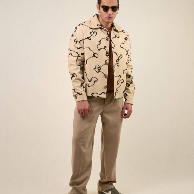 ست جکت پارچه مربعی،شلوار پشمی P&B، کتونی نایک کرتز قهوه ای