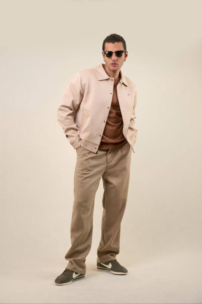 ست پیشنهادی جکت پارچه مربعی،شلوار پشمی P&B، کتونی نایک کرتز قهوه ای گالا