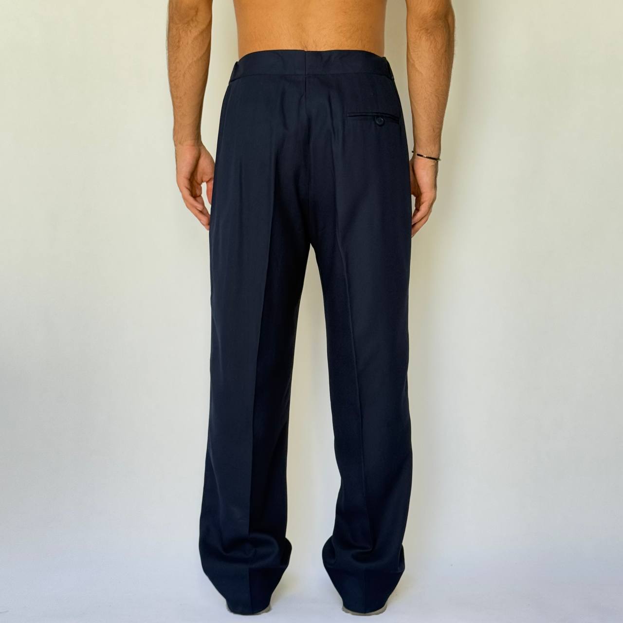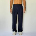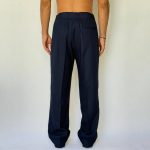شلوار لینن بک کمرکش سرمه ای 19766173
