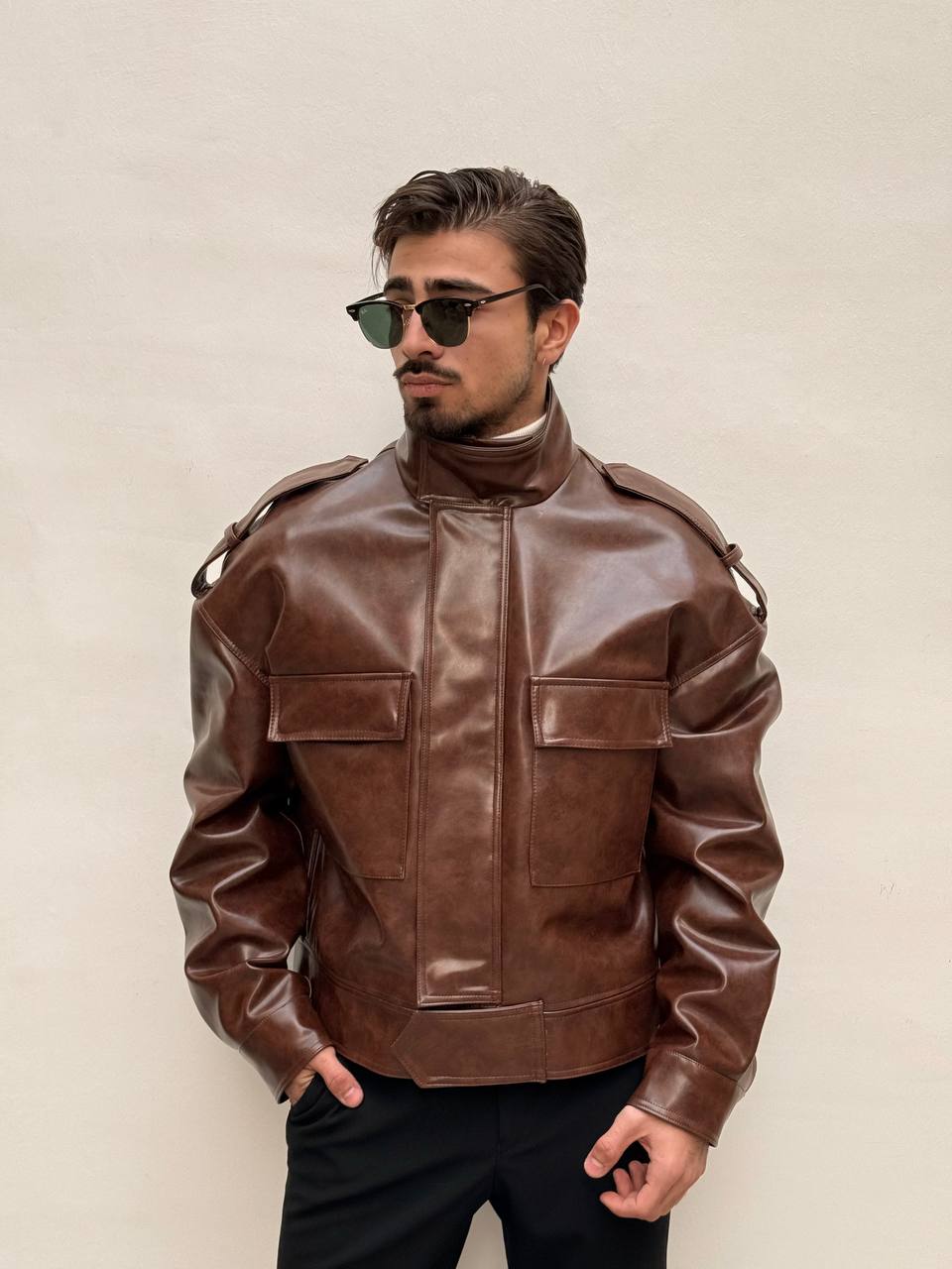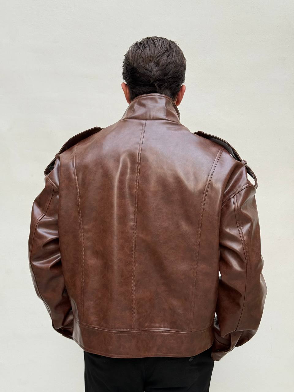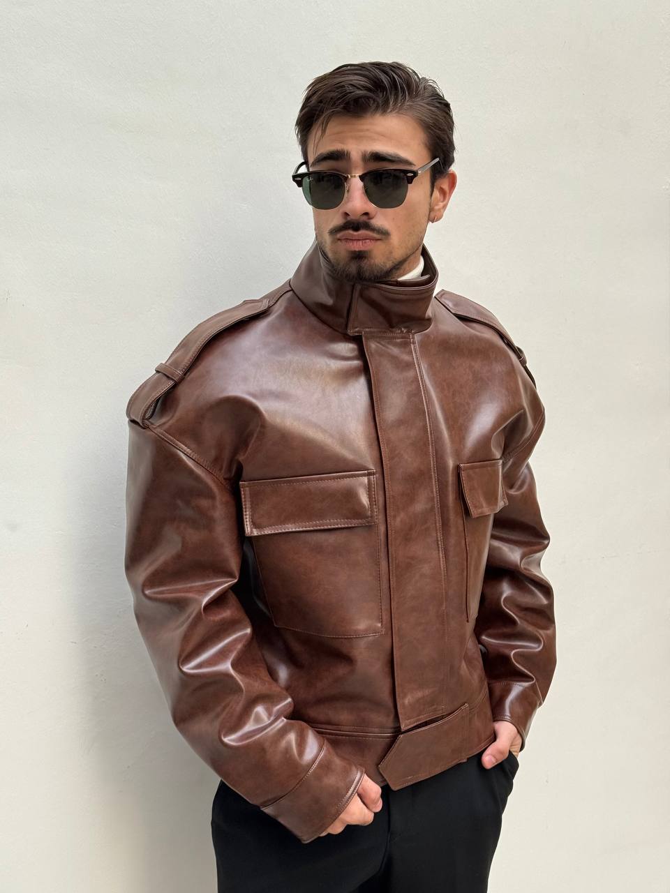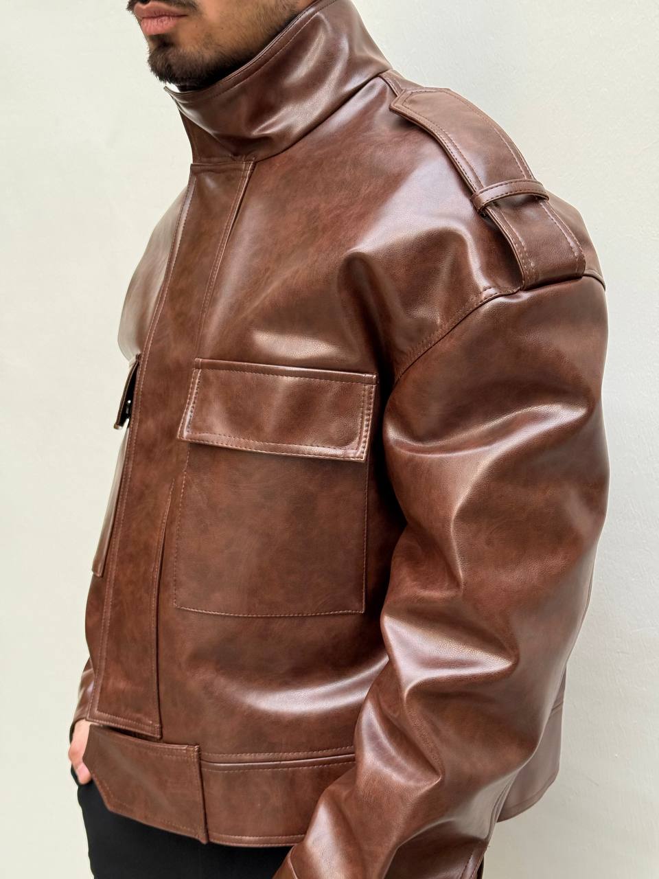 کاپشن چرم چوب قهوه ای ۲۰۲۰۵