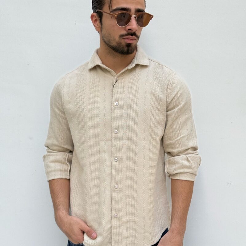 پیراهن بافت کرم برند comfidenc کد ۲۰۱۵۳۱۲۳