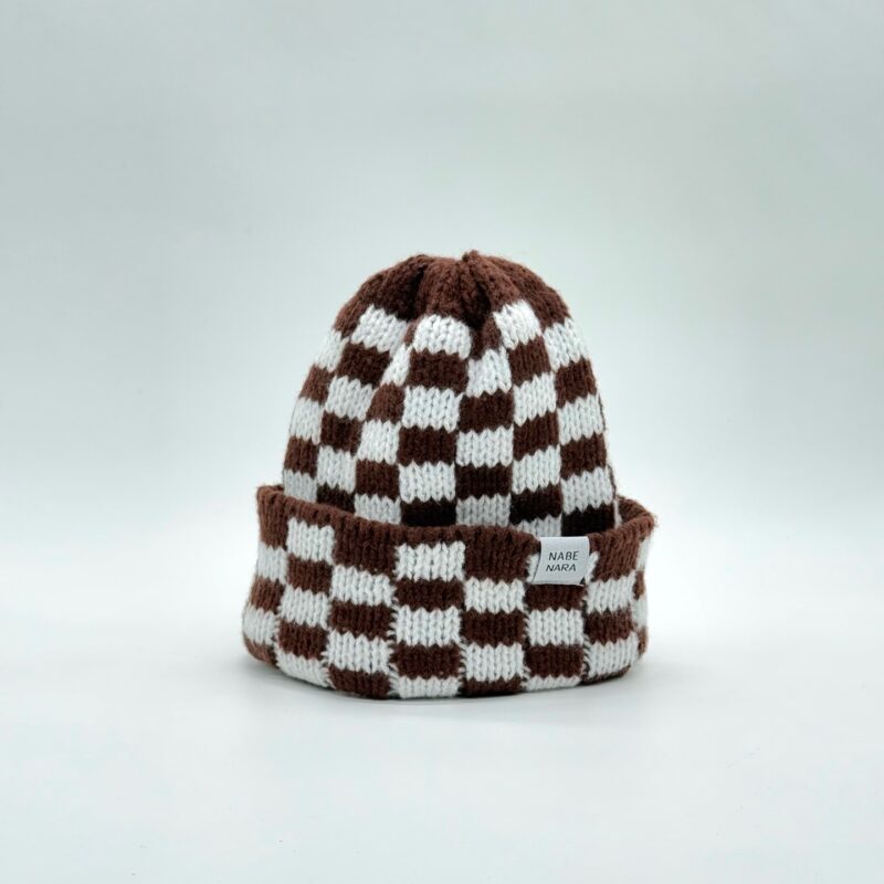 کلاه بافت شطرنجی قهوه ای کد ۲۰۲۵۶۳۹۱۲